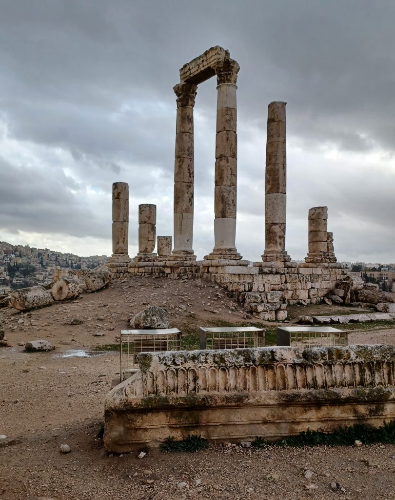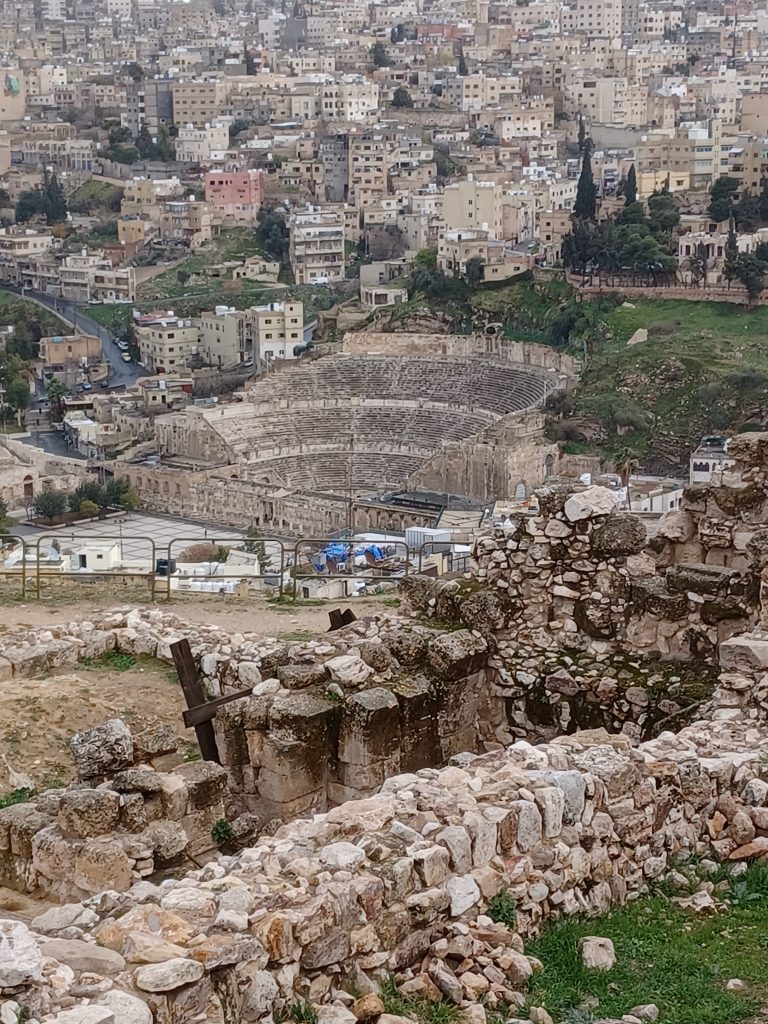 On Amman’s highest hill is the citadel, once named Rabbat Ammon after the Kingdom of the Ammonites in about 1200 BC, then renamed ‘Philadelphia’ by the Greeks. This means ‘city of brotherly love’. Who knew? That is one of the great bonuses of travelling: always learning something new. When the Romans took over in the first century, they built a huge temple on the citadel’s highest point, which they dedicated to Hercules. Scattered upon the ground amongst the remains of old columns and capitals, are fragments of Hercules’ once gigantic statue, including a huge chunk of three fingers. I note that one of the fingers even has a bit of nail left.