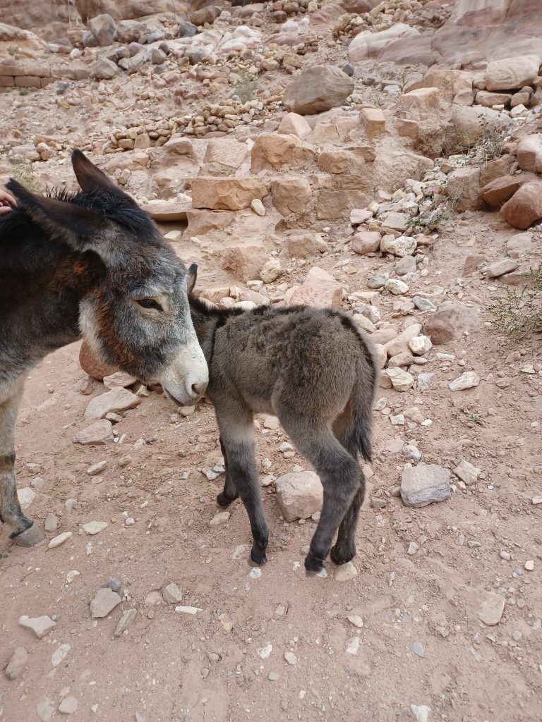 Petra is inhabited only by a few Bdoul Bedouin, who claim descent from the Nabataeans, and who live in caves as their ancestors once did, tending herds of goats and sheep away from the crowds of tourists. Our guide tells us that most of the Bdoul were rehoused by the Government in buildings in a village nearby, as Petra became a major tourist attraction. Some offer donkey and camel rides, or sell souvenirs and refreshments.