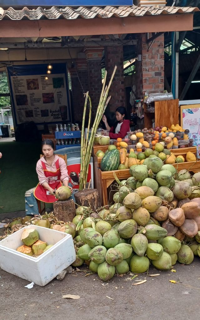 Considering that I have been up for a substantial number of hours from the morning’s first blush, the mood is sparkling. First an early breakfast overlooking the Mekong from Nam Khong Riverside café on the Thai side of the border. So early that the sun still reflects orange in the river.