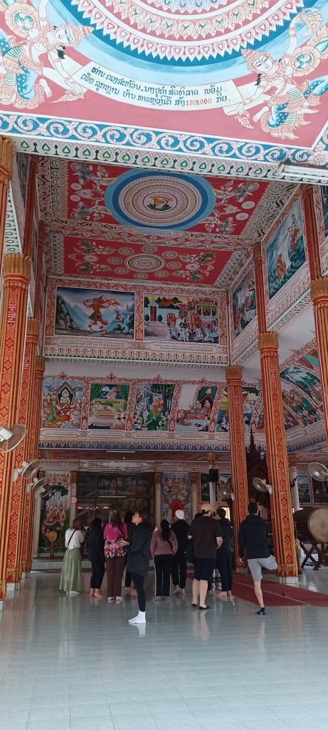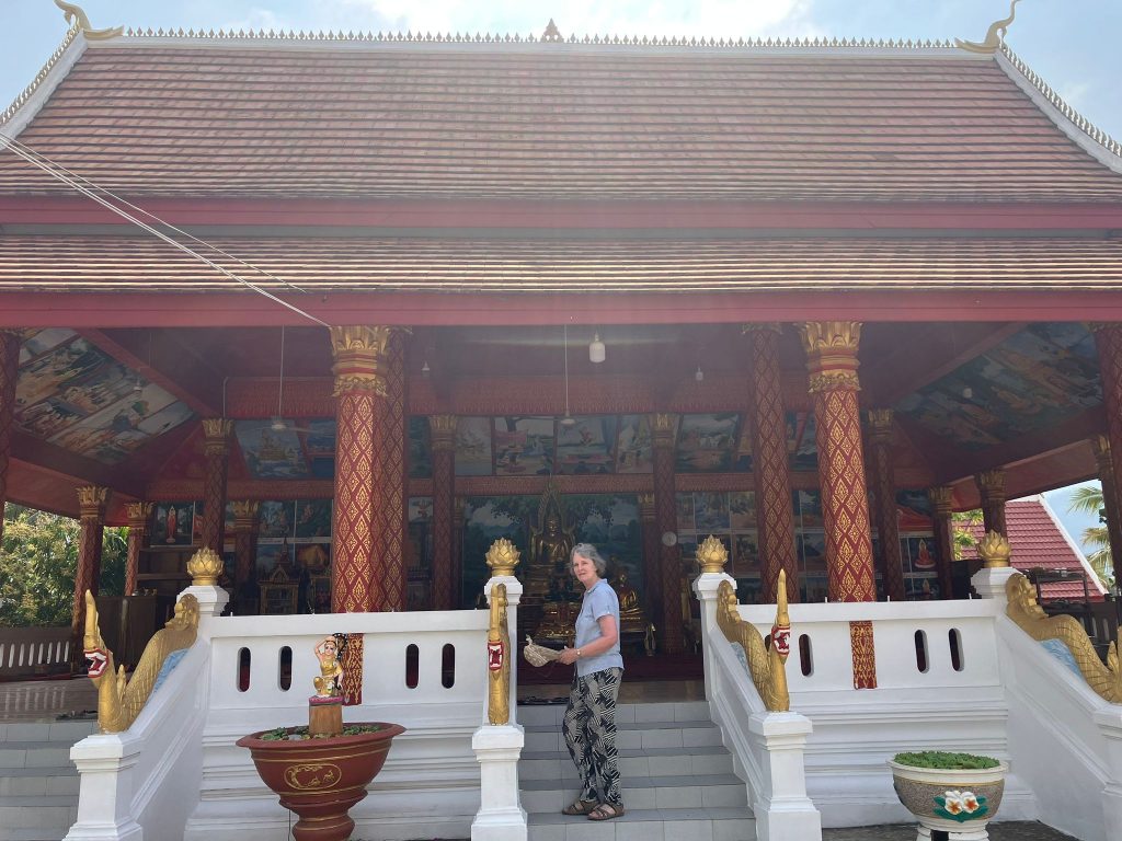 Raining. These spectacular mountains are obscured but it is 19 degrees, which makes a welcome change from the excessive heat. We take a coach to Vientiane. I have time for reflection. Interesting tour group. Range of characters. Invariably get a good mix. Some loud, some quiet, some demanding, some laissez-faire, the organised and the faffers. As for the tour itself, lots of variety, rather too many optional extras and a vast amount of organisation for the CEO to try to accommodate the needs of fifteen participants ‒ from young thirty somethings to older seventy somethings. He manages it all with infinite patience.