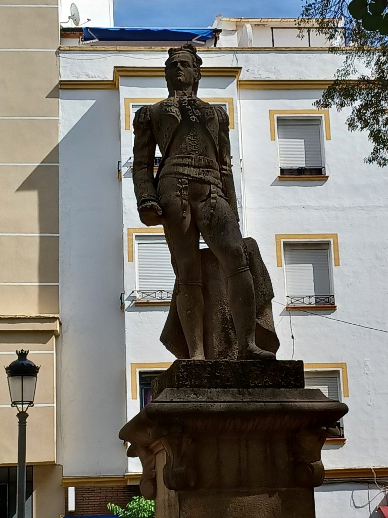 Our guide implies that bullfighting is part of UNESCO’s intangible cultural heritage. However my research seems to indicate that UNESCO refused the request to include the practice as it contravenes its principles of non-violence. Perhaps I misunderstood. It has been declared part of Spain’s cultural heritage though under a law of 2013 and is still practiced, especially in the summer months. Whatever one may think of this ‘entertainment’, the bullring here at Ronda is a handsome structure, a bright white circular building with a partially tiled roof, which provides shade for the two layers of seating inside. The seating area has a double arcade of columns and arches in front of it surrounding the sandy yellow bull fighting ring. Many writers and artists have attended bull fights here, including Ernest Hemingway. Funny to think he was once sitting nearby. Hemingway was a great aficionado of the sport. His book, ‘The Sun also Rises,’ contains descriptions of bull fights, and he mentions Romero.