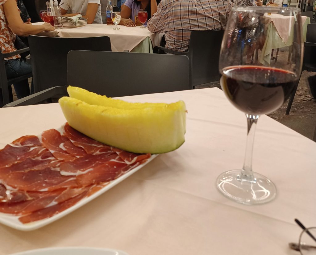 Alluring cafés attract the traveller. We find one named ‘La Flamenka’ advertising mixed Tapas for ten euros. At a cosy table by the wall on a steep narrow street we sit outside and tuck in to the tempting tapas and the Spanish red. Salud!