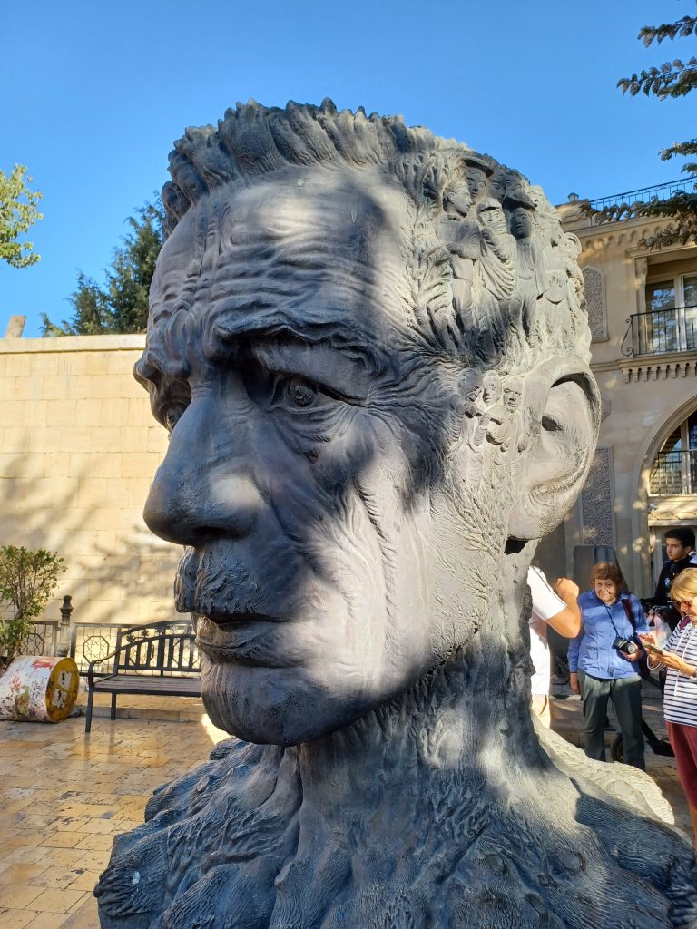 We drive south west of Baku through arid countryside dotted with oil rigs. “Let me tell you, they pump over 5,000 barrels of oil each, every day”, we are informed. The late President Heydar Aliyev’s portrait appears on posters and placards everywhere. Many places are named after him. Our guide gives us a brief history. He, Heydar Aliyev, became the 3rd most important member of the Soviet Politburo and was head of the Azerbaijani KGB in 1967. In the bad old days after the USSR broke up in 1991 there was civil war in the country as well as war with Armenia over the Nagorno-Karabakh region. Heydar, who had retired to the western part of Azerbaijan – the separate part, possibly soon to be connected by Trump’s TRIPP corridor – was asked to become president, after two other presidents had only lasted a year each. “He did three important things”, our guide emphasises. He stopped the war with Armenia, calmed the civil war and invited investors to invest in the oil industry. He succeeded thus in stabilising the country.